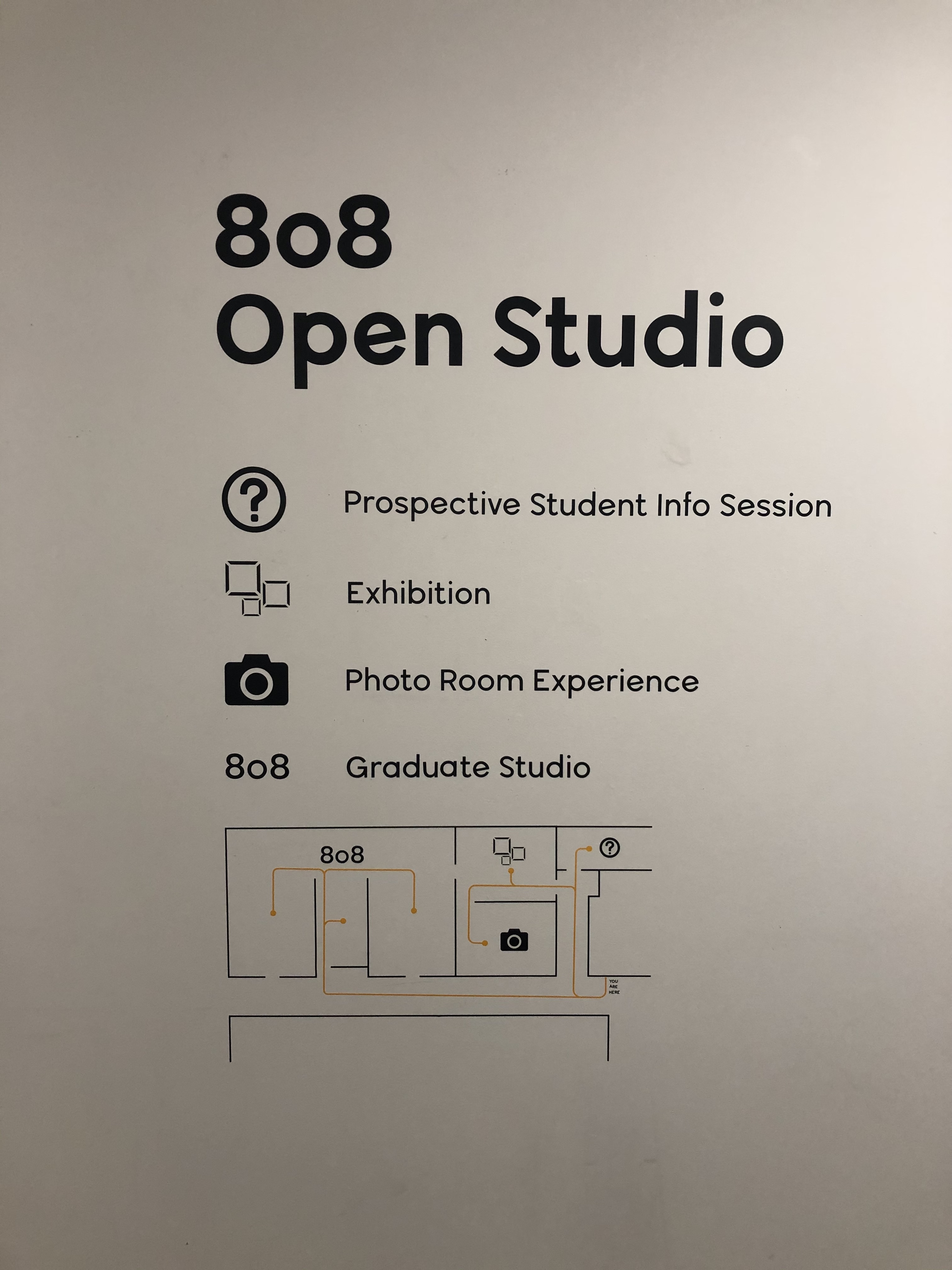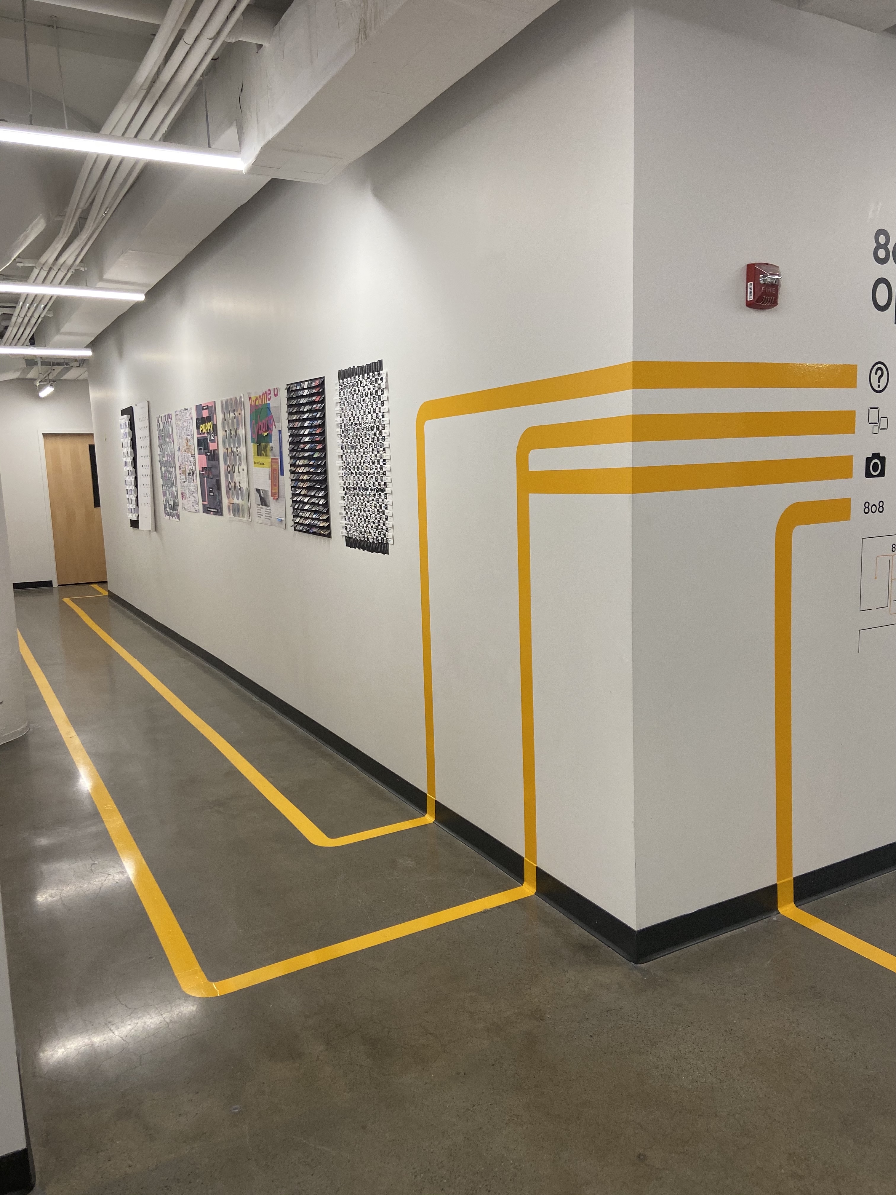 How do you find place within space when that space is an active construction site? Extensive wayfinding. For the Graphic Design Open Studio in 2019, we created a wayfinding system that spanned the entire building, leading people from the entrance through an active construction site, to the fourth floor, and through the halls to the Open Studio event. They wayfinding also helped guests find their way to the various activities the event had to offer, as well as help them find their way out of the confusing construction site of a building.